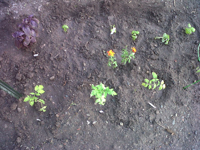 | 15 tomato plants just after being planted. Grow babies, grow! |