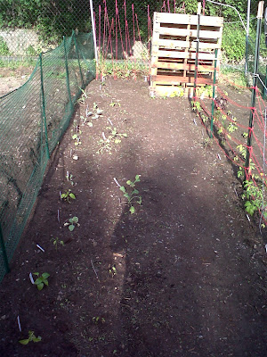 But about half the plots have some sort of fence system in place. And my theory, albeit not exactly super neighborly, is that if we can't keep critters out of the garden totally, perhaps they will avoid my little allotment in favor of an easier to get to, non-fenced in allotment. (read: go eat someone else's stuff)