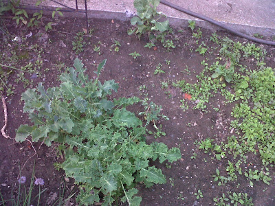 But second, do you see the two big kale plants?! They are from LAST YEAR. And over the winter, the squirrels (evil, evil squirrels) ate them down to stubs because I never got around to pulling them out of the ground.