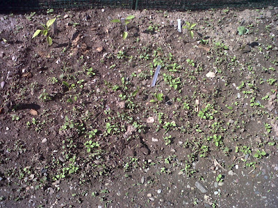 So I spent hours each day this week pulling those weeds. But the left side of the tomato patch, which had all sorts of seeds planted, was last on my list. For a specific reason.