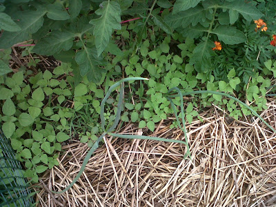 I've shown you photos of my massive weeds. I've since pulled them all. Twice. First I pulled them before laying down newspaper and straw. But I didn't do a particularly great job of laying down the newspaper first. And the weeds said a big eff you to me over that oops. The grew through the thick {but apparently not think enough} layer of straw. Plus I ran out of steam and straw. And had to leave the entire tomato portion (center) open as I had seeds growing on either side. Add to that rain, rain and more rain, which meant I wasn't at the garden daily.