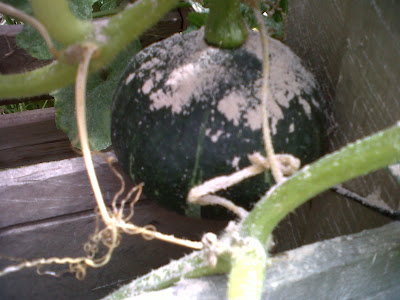 I mean, I planted each and every one of those plants from seed on March 01. To lose them five months later to dumb bugs is disheartening. The photo above is of a plant that is almost dead but it's the only Crane Melon left. I'm doing anything I can think of to keep it on life support so I am able to taste this melon. It's about the size of a softball at the moment. It needs to grow a lot more before I can eat it.